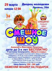 Начало представления: 29 марта в 12.00Парк аттракционов начинает работу с 11.00 в фойе Дворца молодежи.