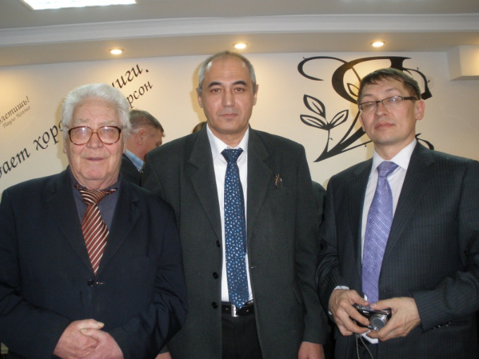 На фотографии слева направо: председатель правления Союза писателей Удмуртии Егор Загребин, писатель Александр Абдулаев, председатель Союза "Чернобыль" Удмуртии Семён Сармакеев.