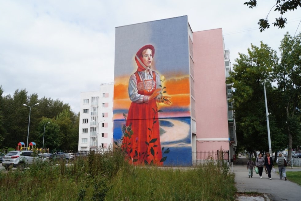На фото к данной новости изображён последний мурал проекта, на котором художник Дима Чепай создал коми-пермяцкую красавицу, прообразом которой выступила солистка ансамбля «Воскресение» Полина Калинина. Эскиз разработала художница Ксения Кокель.