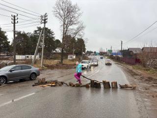 Но, видимо, данная информация дошла не до всех жителей, пострадавших от подтопления. Одна из жительниц, не дождавшись действий властей, накануне, 18 ноября, начала перекрывать дорогу самостоятельно. Для этого она использовала чурки, лежавшие рядом с дорогой от спиленного дерева.