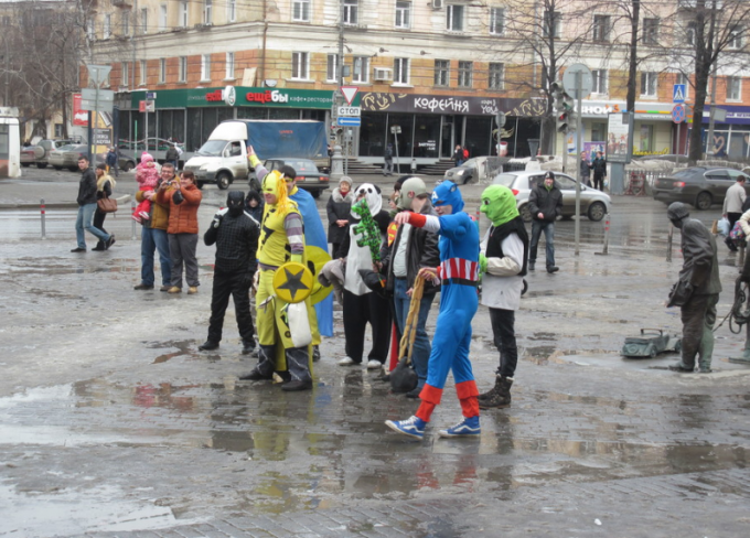 17 марта площадка перед кинотеатром "Кристалл" превратилась в поле битвы с супергероями.