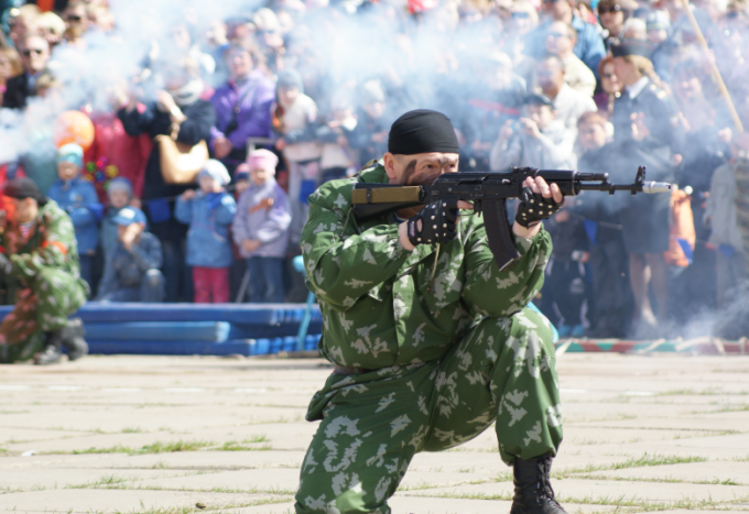 После митинга присутствующим зрителям продемонстрировали свои боевые навыки ассоциация ВДВ и войск специального назначения. А в 13.00 у здания бывшего кинотеатра «Горизонт» начался праздничный концерт. Выступления фольклорных коллективов порадовали жителей и гостей города.
