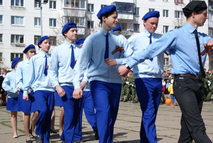 Далее – торжественный марш – дружными и ровными колоннами и отчеканенным шагом прошлись по площади Победы представители военно-патриотических движений.
