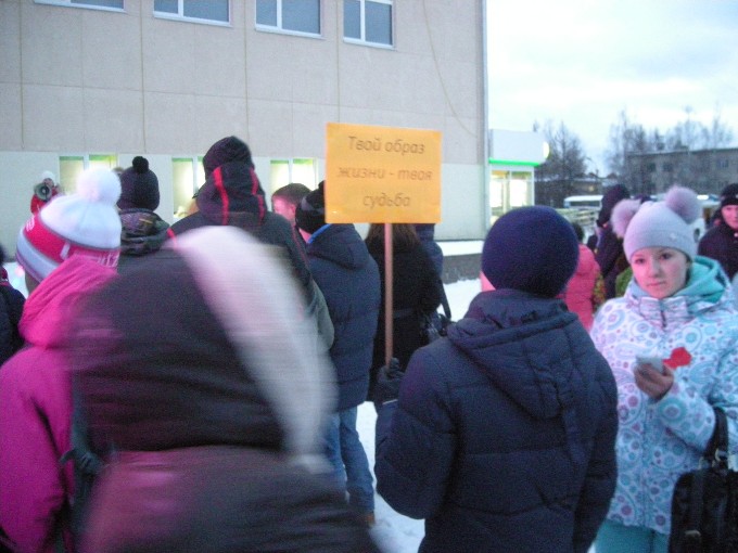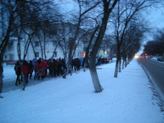 Завершением шествия стал импровизированный хоровод и выложенный на снегу светящийся символ Всемирного Дня борьбы со СПИДом.