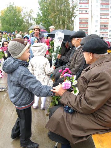 После официальной части митинга самые маленькие жители района пригласили ветеранов возложить цветы к памятнику.