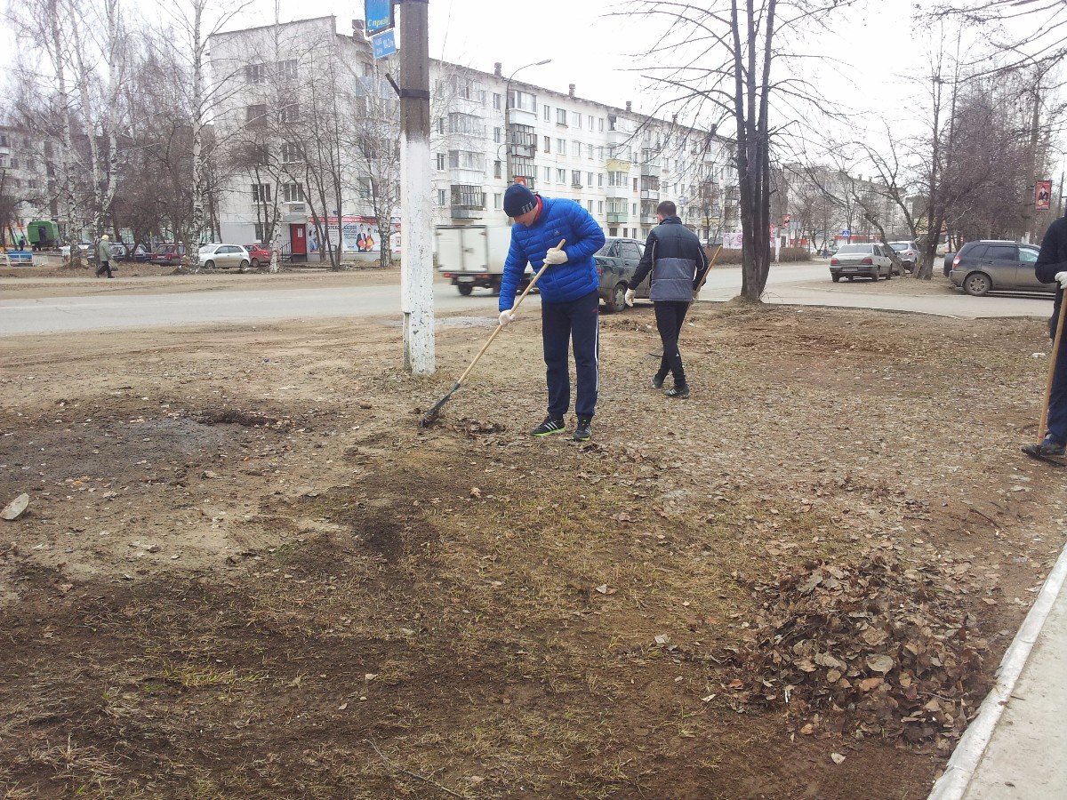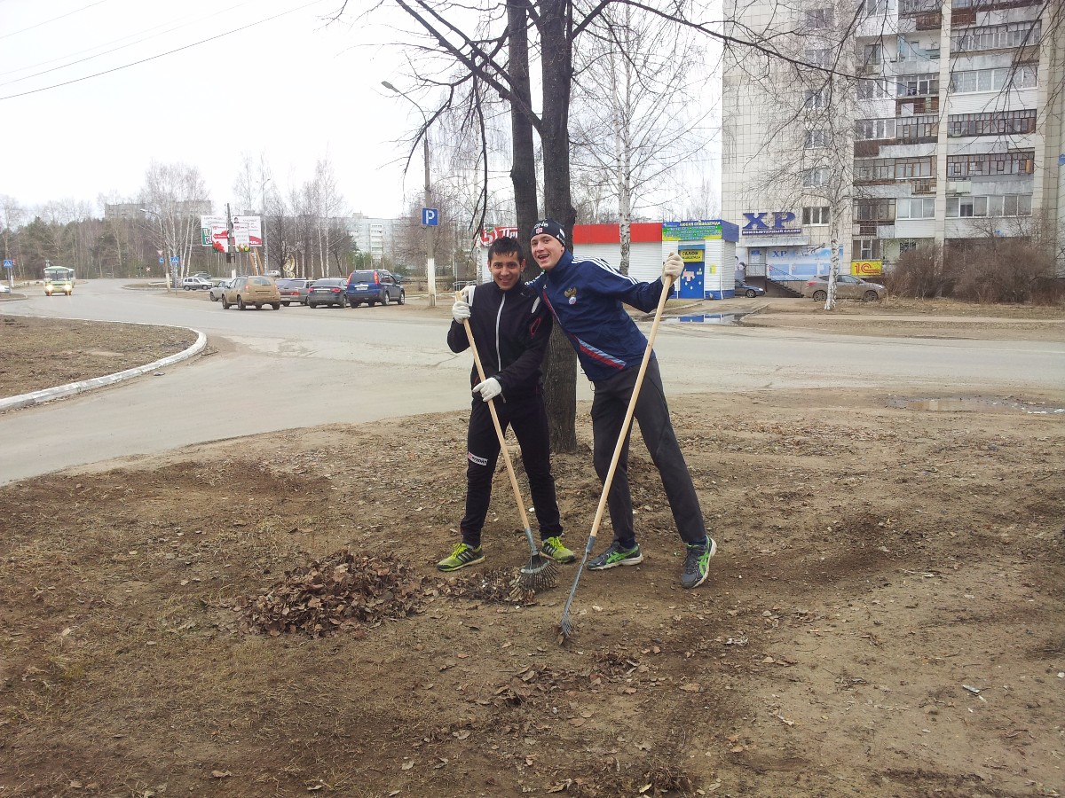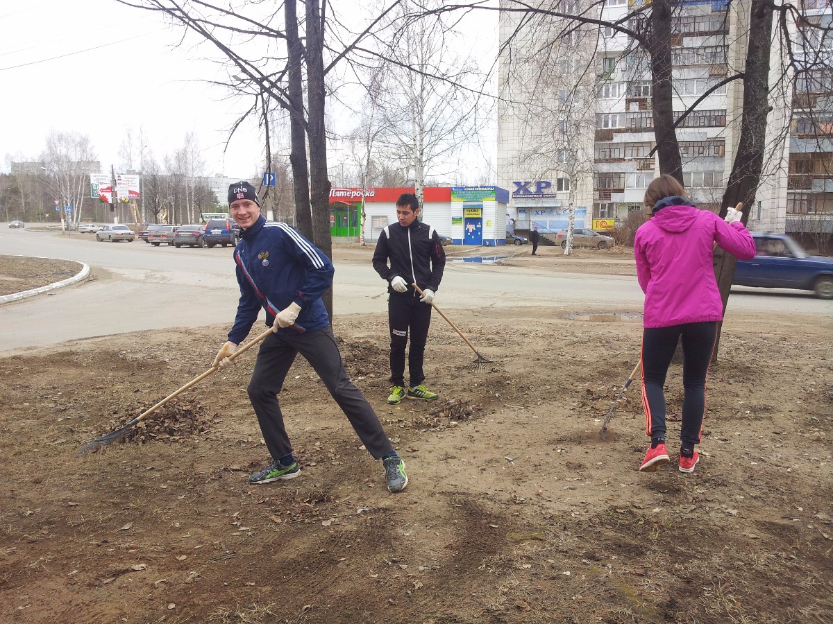 14 апреля нам удалось застать на субботнике студентов Чайковского государственного института физической культуры:
