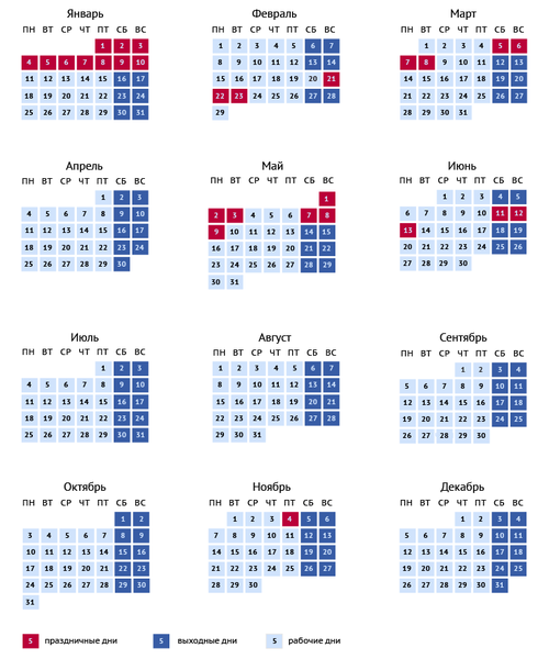 Таким образом, в январе 2016 года будет десятидневный отдых, совпадающий с новогодними каникулами и Рождеством Христовым, в феврале – трехдневный отдых, совпадающий с празднованием Дня защитника Отечества, а в марте – четырехдневный отдых, совпадающий с празднованием Международного женского дня.