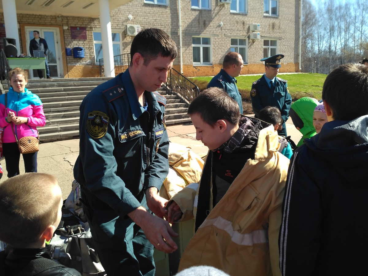 Конечно, им не доверили тушение настоящего возгорания, но доверили снаряжение и пустили в кабину пожарного автомобиля.