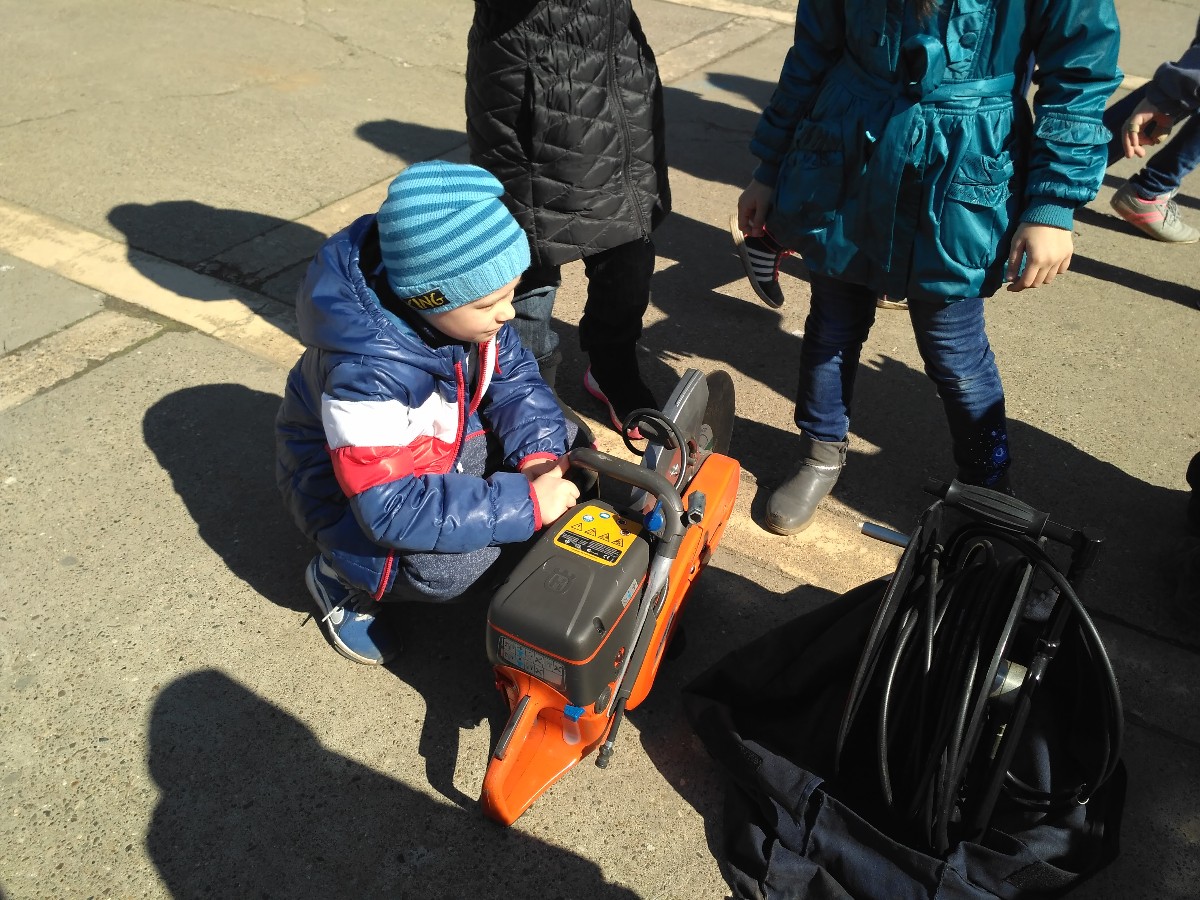 В 11 утра на площади практически не было возможности протиснуться к пожарным автомобилям, потому что все их облепили дошколята, которые оторвались от повседневных детсадовских забот. Воспитатели и пожарные лишь с улыбками наблюдали за любознательными мальчишками и девчонками. Они примеряли спасательную экипировку, щупали спасательное оборудование и старательно надували пневматическую подушку. Пожарные, наблюдая за этим, шутили, что как бы малыши не порвали ее.