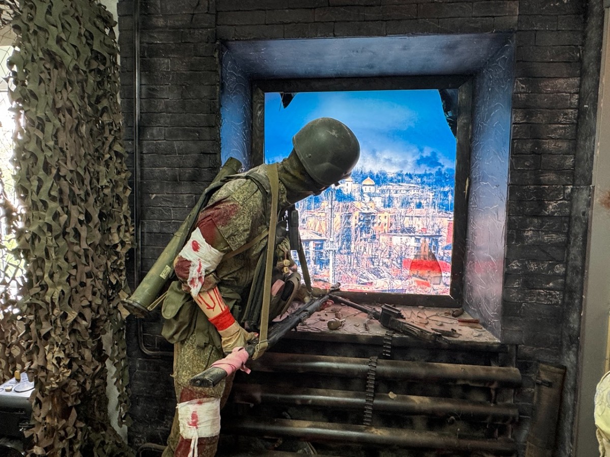 Инсталляция погружает зрителя в атмосферу зоны боевых действий, демонстрирует тяготы военных действий, стойкость и настоящий героизм наших защитников.
