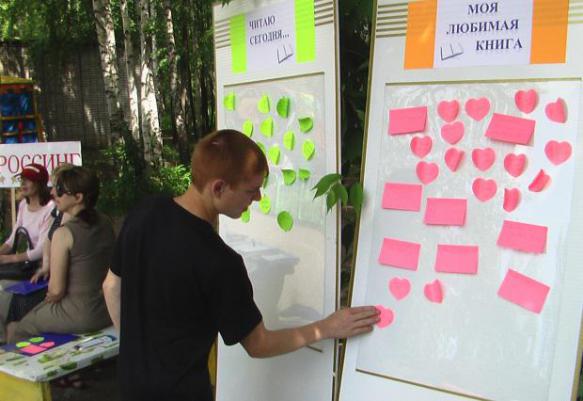 Каждому желающему предлагалось написать автора и название любимой книги. В результате возник своеобразный портрет современного читателя. Среди любимых книг горожан оказались : А. Грин «Алые паруса», М. Булгаков «Мастер и Маргарита», П. Коэльо «Алхимик», Ш. Бронте «Джейн Эйр», В. Каверин «Два капитана», Н. Носов «Незнайка на Луне», В. Волков «Волшебник изумрудного города» и др.